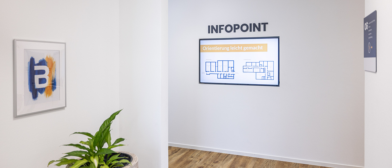 „Wir sind wirklich sehr zufrieden mit der gesamten Projektabwicklung. Schon bei den ersten Gesprächen war klar: Hier sind Profis am Werk, wenn es um Orientierung, Wegeleitung und Markendarstellung geht – innen wie außen. Das digitale Schwarze Brett ist für uns das i-Tüpfelchen und wird unsere gesamte interne Kommunikation nachhaltig unterstützen“, so Nadine Bork – Geschäftsführerin der Pflegeschule Bork GmbH.