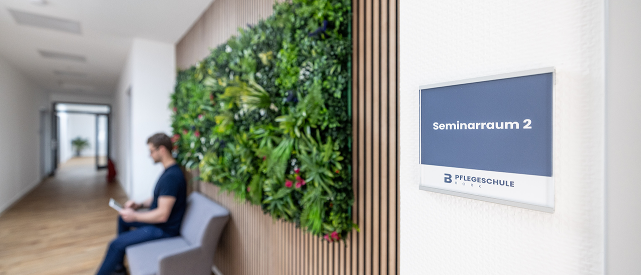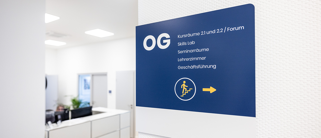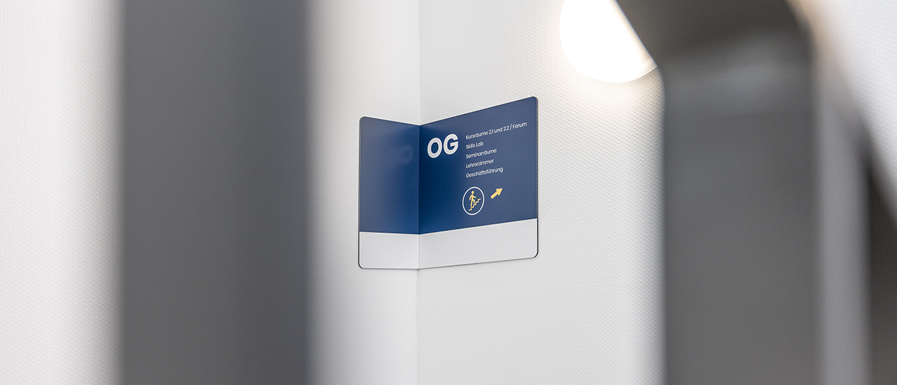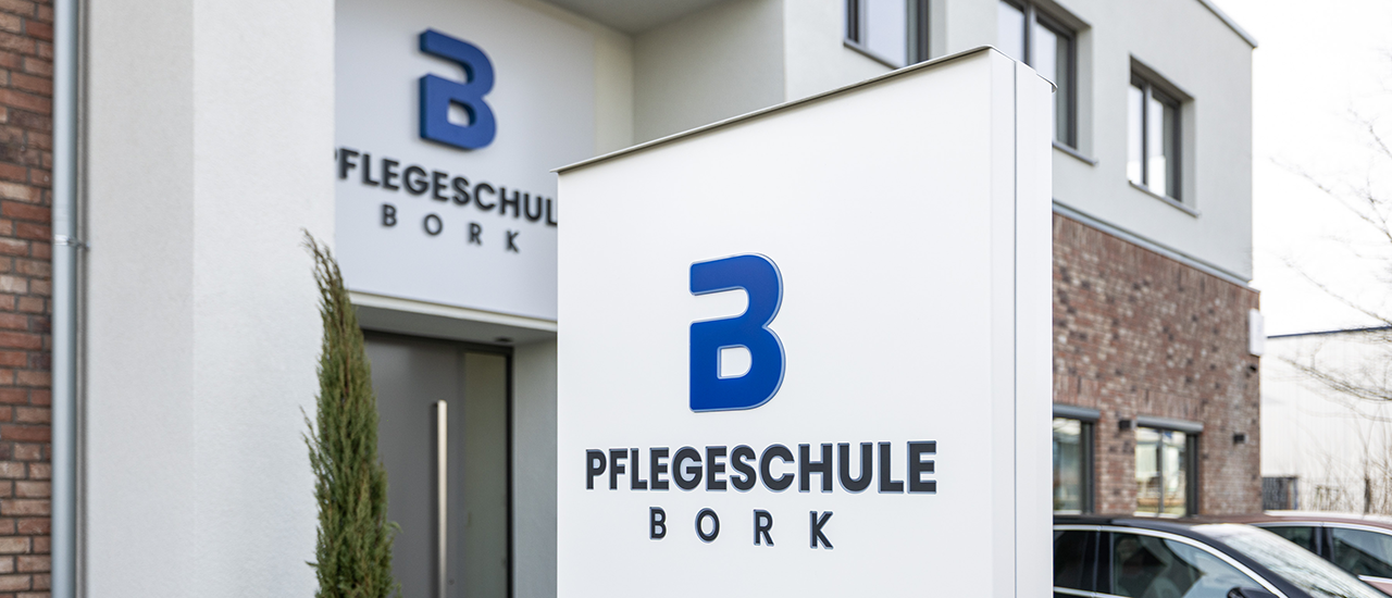 Pflegeschule Bork: Werbetechnik, Wegeleitung & Markeninszenierung wie sie im Lehrbuch steht.