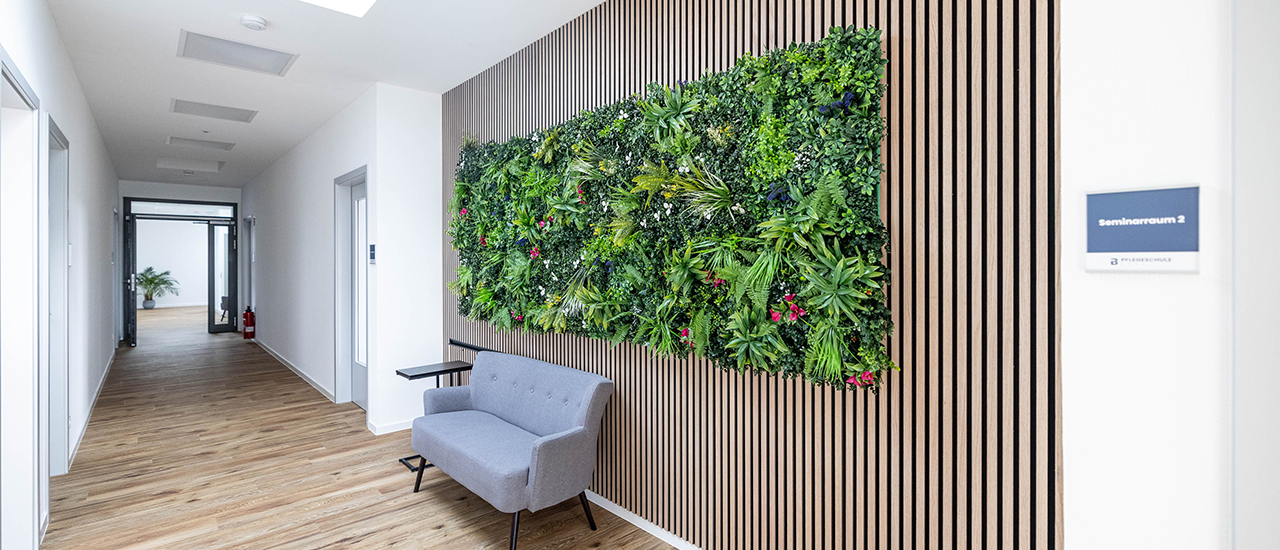 • Grüne Junglewand: Als visuelles Highlight und natürlicher Akzent wurde eine großflächige, begrünte Junglewand integriert – für ein modernes, einladendes Raumgefühl.