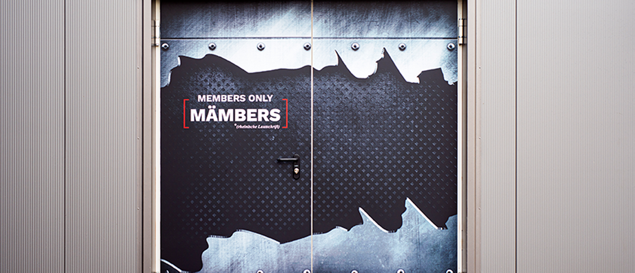 In der Umsetzung wurde nicht gekleckert, sondern geklotzt: Der neue Leitpylon an der Straße ragt mit über 2,5 Metern in die Höhe. Auch der Haupteingang hat ein echtes Makeover bekommen: eine CI-konforme Folierung inklusive dekupierter Aluminiumhaube und durchgestecktem Logo sorgen für einen Auftritt mit Stil.